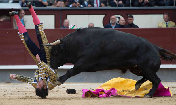 Accidentadísima tarde en Madrid: cinco volteretas, cornadas a David Mora y Jiménez Fortes y lesión de ligamentos de Antonio Nazaré / Aplausos.es