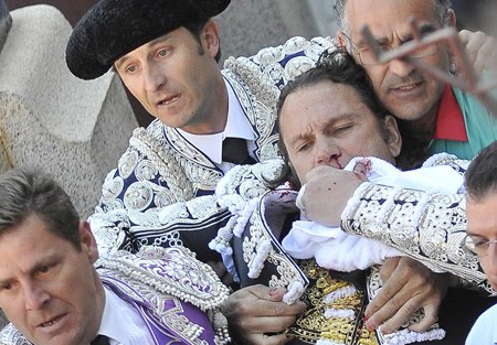 Aparicio, siendo trasladado a la enfermería de la plaza.