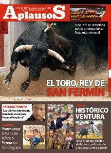 Esta semana la revista APLAUSOS contiene un completo especial sobre la Feria de la Madeleine de Mont de Marsan, que incluye diferentes contenidos y reportajes. Entre ellos, la revista ha publicado todos los toros que se van a lidiar en un ciclo que comienza el próximo viernes 16. Hablan de La Madeleine en exclusivas entrevistas, los toreros Enrique Ponce y El Juli, así como la alcaldesa, la empresaria María Sara o el Presidente de la Comisión, Guillaume FranÁ§ois. Un reportaje histórico repasa las vivencias de una plaza inaugurada en 1889. Además, comprobaremos el ambiente que se vive en ese ya conocido «Campo de Feria». APLAUSOS recoge las impresiones de Antonio Ferrera de cara a su próximo compromiso en los sanfermines, una plaza clave en su carrera, una cita que afronta «con la tranquilidad de saber que estoy en el camino que quiero y eso me tranquiliza», asegura el torero extremeño, que dice encontrarse en un momento en el que «me siento muy identificado conmigo mismo». Otro de los protagonistas de la semana es el nuevo matador de toros Alejandro Esplá: «No aspiro a igualar a mi padre. Sería casi imposible. Él ha hecho su carrera y yo haré la mía con mis méritos», afirma en su entrevista. La presentación de los carteles en Barcelona de la Feria de Ceret y un reportaje sobre la oferta cultural-taurina de Roquetas de Mar son otros de los temas de esta semana en el actual número de APLAUSOS. Además, toda la información de actualidad de las ferias de Burgos, Madrid, Arévalo, Teruel, Segovia, Barcelona y la ya histórica confirmación de alternativa de Diego Ventura en Lisboa. Como es habitual, se cuenta con las firmas de opinión de José Luis Benlloch, Manolo Molés, Carlos Ruiz Villasuso, Barquero y Paco Mora.