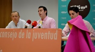 FOTO RUEDA DE PRENSA: Francisco Sánchez -Pte. del Consejo Local de la Juventud de Murcia-. Antonio González Barnes -Periodista y Ex-Teniente de Alcalde de Cultura y Festejos de Murcia- y Pablo Belando -Novillero y ex-alumno de la Escuela de Tauromaquia de Murcia-.Los datos aportados por el Centro de Estudios para el Analisis Sociologico de la Juventud (CEAS) encargados por el Consejo Local de la Juventud de Murcia y que se realizó a 625 jóvenes de la capital y sus pedanías, han dado como resultado de esta encuenta que entre el 51,9% y el 56% de los jovenes murcianos en edades comprendidas entre los 14 y 29 años, están a favor de la celebración de las corridas de toros.