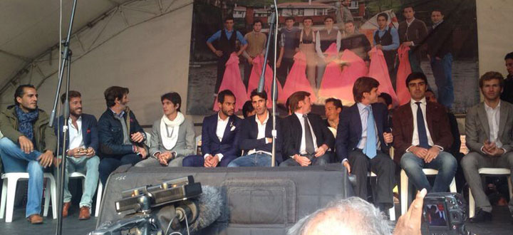 Publicado en APLAUSOS.es La plaza de toros la Santamaría de Bogotá acogió un acto reivindicativo en defensa de la libertad y por el regreso de los toros a la capital colombiana. Además de los toreros -El Juli, Miguel Ángel Perera, Alejandro Talavante, Sebastián Castella, José María Manzanares, Juan José Padilla, Iván Fandiño, Miguel Abellán, Curro Vázquez, Diego Silveti, Luis Bolívar, Manuel Escribano y Octavio García «El Payo», entre otros-, se encontraban Fermín Sanz de Santamaría, nieto del constructor de la plaza de toros, acompañado por Santiago Tobón, empresario de Medellín y Carlos Gómez, empresario de Manizales.
