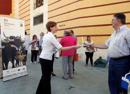 La acción promocional de Almería ha consistido en el reparto durante dos días de miles de folletos explicativos a cargo de azafatas que se encargaban asimismo de informar a los aficionados de las posibilidades de Territorio Toro, que van desde visitas a ganaderías hasta un acercamiento a todo el mundo cultural que rodea la a Tauromaquia.