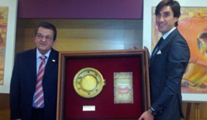 El torero alicantino Francisco José Palazón recibe el reconocimiento de la afición villenense por la extraordinaria actuación realizada el pasado siete de septiembre.