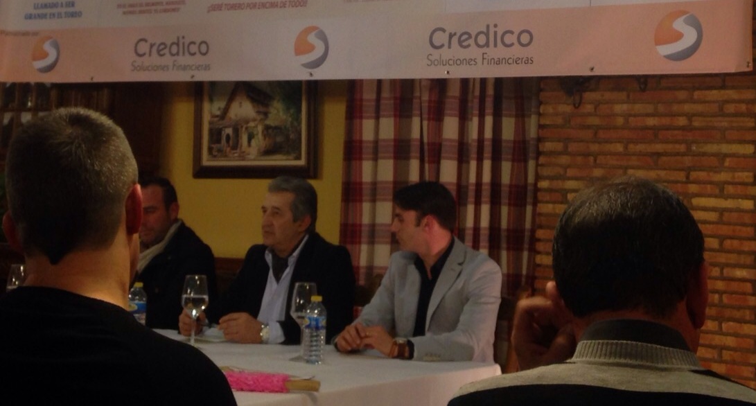 MURCIA. Viernes, 13 Febrero 2015. Texto.- Pepe Castillo Abreu. El complejo hostelero «Rincón Huertano» acogió ayer un encuentro taurino cargado de emociones y bellos sueños por los que continuar luchando y sacrificándose. Así lo manifestaron, ante los medios de comunicación y los aficionados que acudieron a la cita, los protagonistas, el joven y experimentado novillero con caballos, José Manuel -antes acartelado como «Suresteño»- y su apoderado, Luís Sánchez «Guerrita», junto a Juan Carlos Marín -Pte. de la Peña del novillero-. El motivo del encuentro era la presentación del nuevo proyecto del novillero de Alquerias, en el que para empezar se anunció el cambio de nombre en los «carteles», y que estará apoderado por el reconocido taurino Luís Sánchez «Guerrita», toda la garantía de un gran profesional avalado por larga trayectoria y reconocido prestigio, con