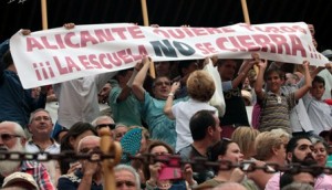Los Alumnos de la Escuela Taurina de Alicante exhibieron pancarta: «La Escuela No Se Cierra. Alicante