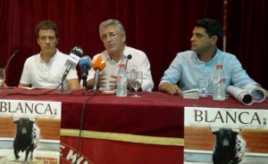 Francisco Bayona, que presentó el acto. Reverte, agradeció la presencia de la concurrida asistencia de Medios de Comunicación y aficionados que se dieron cita, especialmente a los que se habían desplazado desde distintos puntos de la Región; manifestó Juan Reverte, que sólo hay seis puestos, lo que condiciona y limita otras posibilidades, pero, declaró: «Los carteles se han hecho con toda la ilusión y pensando en que sean del interés de los aficionados, tanto por el alto nivel de los novilleros, como por las tres importantes ganaderías anunciadas y la excelente presentación que tienen los novillos reseñados. El esfuerzo para la empresa es importante, porque los precios son muy reducidos y los números va ser muy difícil que cuadren con una plaza de tan sólo dos mil localidades. Pero hemos tomado la decisión de apostar fuerte en Blanca, y con todas las consecuencias. Tengo la seguridad de que el Ayuntamiento prestará su mejor colaboración, y confío en que la afición responda como siempre lo ha hecho». Por su parte, el primer edil, Pedro Luis Molina, declaró: «Reconozco que no soy un entendido en toros, pero tampoco soy un desconocedor total. Mi presencia en este acto es toda una aclaración de mi postura, respecto a mi compromiso y respeto, como alcalde, con las tradiciones de mi pueblo. Y en particular con la tradición taurina de Blanca». Y le pregunté, naturalmente, respecto al revuelo que despertaron en las redes sociales ciertas declaraciones antitaurinas que se le atribuyeron, hechas en 2010, y respondió: «Me consta ese desagradable incidente, que nada tiene que ver con la realidad, y que ha sido fruto de un montaje artificial». Y concluyó, clausurando el acto, solicitando a los medios de comunicación presentes para que dieran la mayor y mejor difusión de la Feria de Blanca, invitando a todos los aficionados y no aficionados a conocer lo mejor de Blanca en sus fiestas patronales.