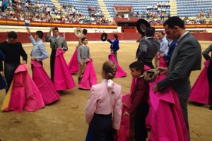 ABARÁN (Murcia). Sábado, 3 Octubre 2015. Prensa-E.T.R.M. – Feria de San Cosme y San Damián – Tras el paseíllo, todos los alumnos invitaron a saludar, recogiendo una gran ovación, al maestro Pepín Liria y al profesor José Mari Ortín en reconocimiento a su labor docente. Acto seguido, los alumnos menores hicieron una simpática muestra de toreo de salón.
