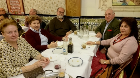 Ha sido durante el mensual cocido madrileño que celebra la Peña “USERA” y entre Socios y Amigos se encontraban D. Salvador Sánchez Marruedo, D. Felipe Díaz Murillo D. Ramón Rodríguez, D. Rafael Pino, D. Carlos Santiago, D. Isidoro Lorenzana, D. Luis Gutiérrez Valentín, D. Oscar López Guijarro, D. Gabriel Ubeda Reyes, D. Joaquín Marqueta, D. Francisco Soriano, D. David Saugar “Pirri”, D. Fernando Salmerón, D. Luis Martin Esteban y nuestro Presidente,D. Mariano Aguirre, con el Salón repleto de comensales.