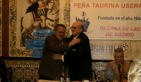 Nos ha legado, fruto de su gran pasión, un ejemplo a seguir como persona y como aficionado. El 27 de Diciembre del año 2013 la Peña Taurina Usera -Decana de Madrid-, le nombró “AMIGO DE LA DECANA” por los excepcionales servicios y merecimientos durante tantos años a la Fiesta.