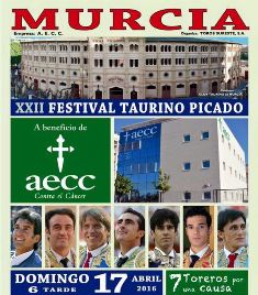 CIEZA (Murcia). Miércoles, 6 Abril 2016. – Prensa-C.T.CIEZA – Como cada año, el Club Taurino de Cieza organiza un viaje a la plaza de toros de Murcia para asistir a el XXII Festival Taurino Picado en colaboración con la AECC., que se celebrará el Domingo 17 de Abril a las 18:00 en punto de la tarde.