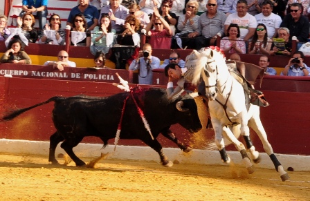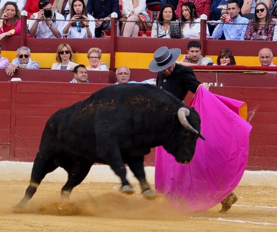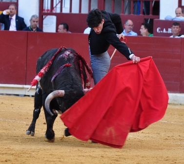 ANTONIO PUERTA, hay que decubrirse con su comparecencia, mermado visiblemente de facultades e infiltrado, a causa de la grave cornada que sufrió en Cieza; tuvo el arrojo de no presentar parte facultativo para que le sustituyeran. Tiró de raza y amor propio para afrontar el compromiso. Lo hizo olvidándose de los puntos y del dolor fisico. Vistoso y lucido en el recibo, fue muy aplaudido. Brindó al El Cordobés, y se fue con decisión a la boca de riego iniciando la faena con dos cambiados por la espalda. Con la muleta alcanzó notables momentos por ambos pitones en tandas de ajuste que fueron a más y que el público supo valorar y premio con sonoros olés. Quizá prolongó un punto la faena, el toro le había avisado y se escapó de la primera, no fue así en la segunda ocasión cuando al rematar con el de pecho