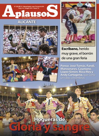 El número 2.022 de APLAUSOS ya está en los quioscos. José Tomás y toda la actualidad de las ferias de San Juan, con especial atención a las celebradas en Alicante y Badajoz, así como el inicio del abono de Burgos y los festejos celebrados en Algeciras, León y Zamora centran gran parte de los contenidos del ejemplar. De todas ellas se da buena cuenta tanto crónica como gráficamente.