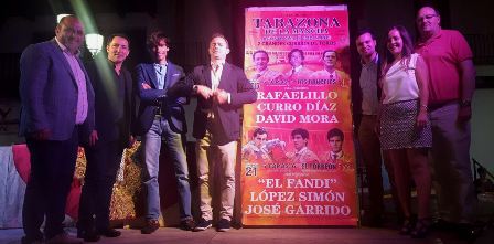 TARAZONA DE LA MANCHA (Albacete). Viernes, 1 Julio 2016.– Prensa-T.S. – En la noche de este viernes se ha presentado la Feria Taurina de la localidad manchega de Tarazona, en la presentación han estado el alcalde de la localidad, Miguel Zamora, el empresario Antonio Soler,el ganadero César Rincón, los toreros Rafaelillo y Curro Díaz, y el prestigioso cirujano Pascual Masegosa. El acto ha sido moderado por la periodista Juani Serrano.