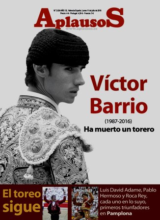 APLAUSOS dedica la portada de su número 2.024 a Víctor Barrio. Bajo el título “Ha muerto un torero”.