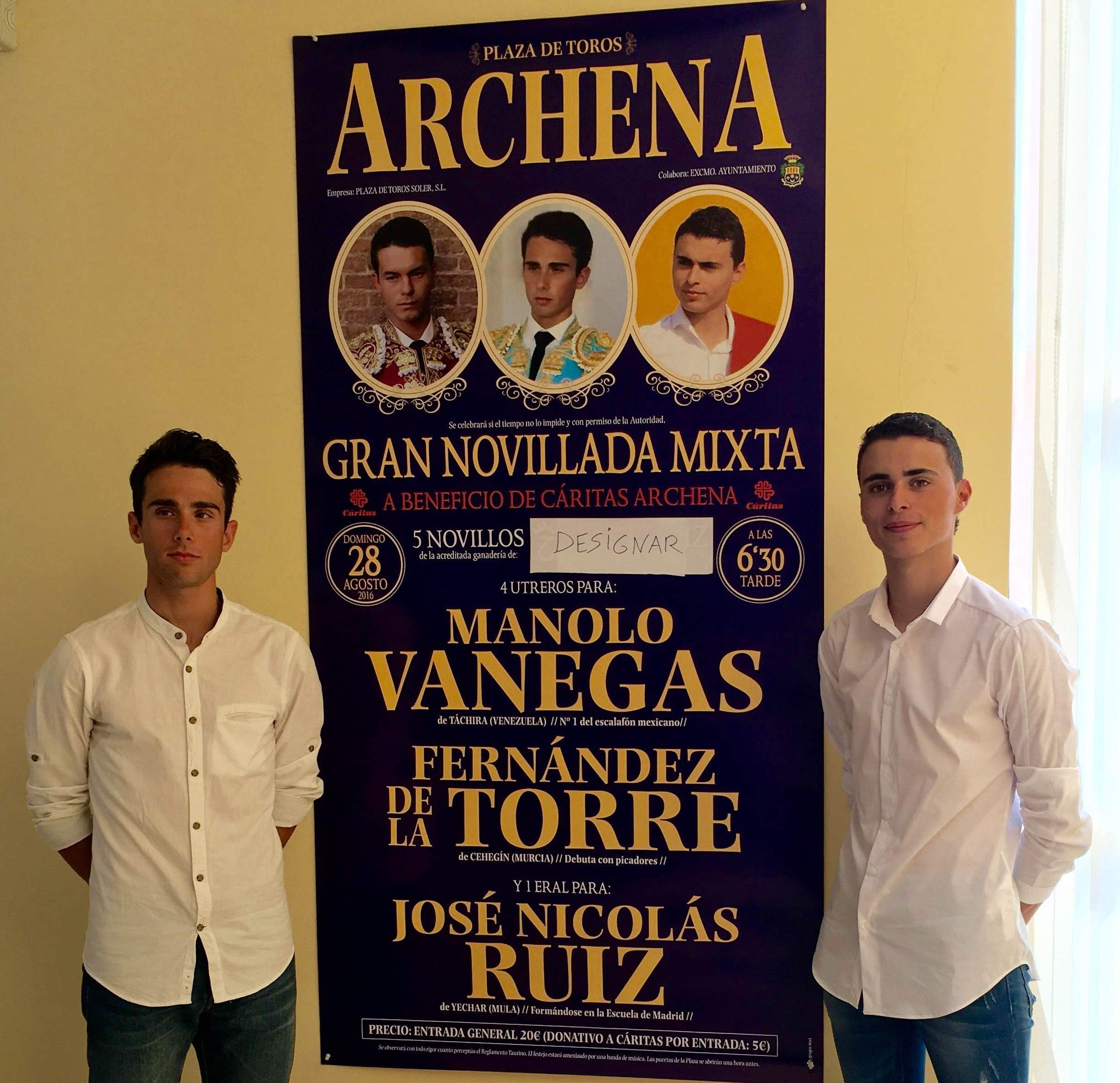 ARCHENA (Murcia). Lunes, 25 Julio 2016. – Redacción.- (Fuente: Prensa-P.T.S.) – Hoy lunes, se ha presentado el Cartel de la novillada mixta que se celebrará (Dm) el próximo 28 de agosto a beneficio de Cáritas Archena.