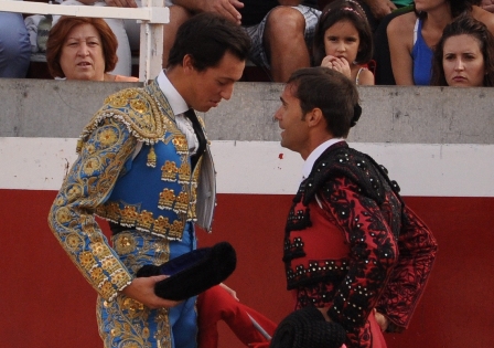 fiesta de la primera parte a sonora bronca, todo por el infortunio de los dos últimos novillos, y el abismal contraste del muy terciado sobrero que sustituyó al 3º. Los utreros de Algarra irrumpieron como no suele verse en estos tiempos, de salida fueron auténticos “formula 1” con el pedal a fondo, impresionaron porque eran auténticos toros por volumen, aunque cómodos de cara. Tercero y cuarto, para decepción general, marcaron negativamente la tarde, acusaron sufrir súbitas serias lesiones motrices, quedando inutilizados para la lidia. Lo dicho, se pasó de la fiesta a la decepción, los ánimos se calentaron derivando en fuerte bronca del público, con insultos improcedentes de una minoría, algunos se acercaron al palco para airadamente increpar al presidente y asesores, y las fuerzas del orden –Guardia Civil y Policía Local- controlaron la situación. Se aplacaron los alterados ánimos. Pero, para quién lo ignore, la empresa y el palco cumplieron debidamente con sus obligaciones y con el reglamento, y el sobrero obligatorio estaba dispuesto y saltó al ruedo.