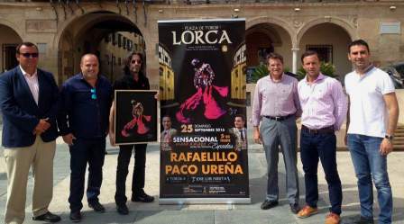 En la presentación el empresario Antonio Soler, que evidenciaba su satisfacción, ha estado acompañado por Francisco Jódar -Alcalde de Lorca-, Rafaelillo, el autor del cartel Remy J. López y Juan Coronel -Pte. Club Taurino de Lorca.