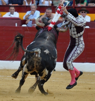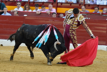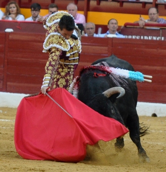 JOSE MARI MANZANARES, me recordó “al manco zurdo” de El Fugitivo (recuerdan la serie), estuvo casi inédito en el toreo al natural. El dinástico alicantino, con peor suerte en su lote, hizo dos faenas de buenos momentos que se aplaudieron con fuerza, pero sin alumbrar su excelso toreo por falta de material. En su 1º, anovillado, discreto recibo, lo mejor la media. No se castigó en varas. La faena fue larga en exceso y el toro acabó desengañándose. Entera en la suerte contraria sin puntilla. Se aplaude al toro en el arrastre. Una oreja. En el 5º, el