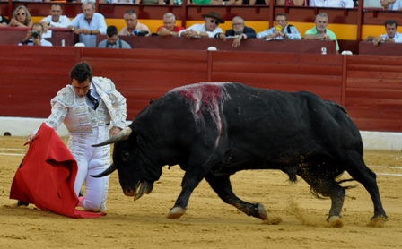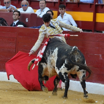 LÓPEZ SIMÓN, no pudo lucirse en el recibo con un toro que salía muy suelto y buscaba la querencia, los enganchones acabaron con los intentos. Puyazo de trámite y en banderillas dejó manifiesto su peligro, se escaparon de verdadero milagro los dos subalternos. Volteretón en la brega que acusó. Comenzó la faena agarrado a la barrera. En la muleta fue un toro complicado, protestaba, y que ya había dejado evidencias de manso, la faena transcurrió sin pena ni gloria con un toro rajado que dobló en la misma puerta de arrastre. Se complicó el enganche en las mulillas que no pudieron salir al ruedo. Tras pinchazo entera en la yema. Silencio. En el 6º, el recibo hizo presagiar lo peor para el triunfo, el toro le sorprendió con dos coladas con desarme incluido cuando lo llevaba al caballo. Pero López Simón, conoce esta plaza y la bondad de la clientela. Se tiró de rodillas con una vibrante primera tanda que fue el inicio del de un final feliz. Por ambos pitones se vieron buenas tandas y un público entregado. Alberto afrontó los