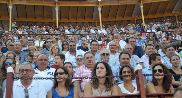 MURCIA. Martes, 13 Septiembre 2016. – 3ª de abono Feria de Murcia – Texto y Fotos.- PEPE CASTILLO ABREU. No es porque quién firma sea supersticioso, pero, en lo que al que pintan como fatídico día –Martes y 13– para bendiciones matrimoniales y para navegar, afortunadamente transcurrió en el ruedo sin mayores sobresaltos; en primera persona les cuento. Me rociaron en traición accidental con una bandeja con helado en estado de chorreo fanganoso, quedé lo que se dice delicatessen, de «durse» pringoso de la nuca hasta la correa del vaquero, que frenó el escalofriante recorrido la sustancia. Ni pidieron disculpas, es más la joven pareja autora de la pegajosa abstracta obra en mi camisa, con calado epidérmico, creo hasta se molestaron, cuando me giré y les pedí tuvieran a