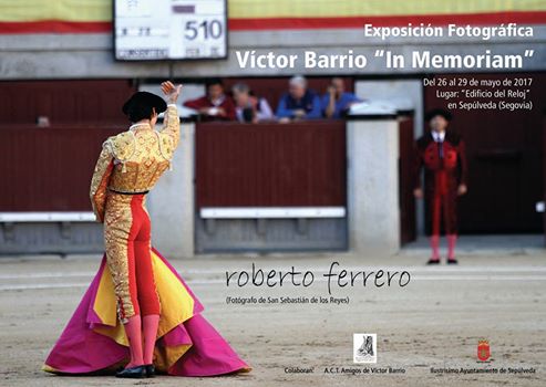 SEPULVEDA (Segovia). Miércoles, 24 de mayo de 2017. -Prensa-Victor Barrio – A través del objetivo del madrileño Roberto Ferrero se podrán ver los momentos más importantes y especiales de la trayectoria de Víctor Barrio en las plazas de toros de Las Ventas y Valdemorillo (Madrid), donde el segoviano consiguió algunos de sus triunfos más contundentes. Una treintena de instantáneas reflejan todas las cualidades y virtudes que atesoraba Barrio como torero y como persona. Sensibilidad, tauromaquia y sentimientos se desprenden de cada una de las obras de la muestra.