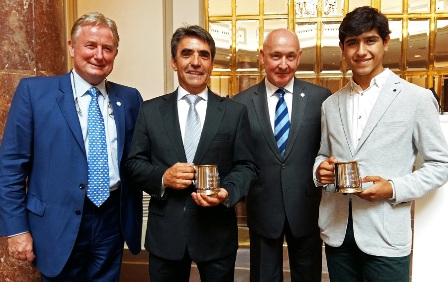 MADRID. Martes, 30 Mayo 2016. – Prensa-C.T.L. – Informa.- Mike Penning – El Club Taurino de Londres celebró ayer lunes su almuerzo anual de amistad entre aficionados españoles y británicos, en el Hotel Wellington de Madrid, con motivo de la feria de San Isidro y rindieron homenaje al Ganadero D Victorino Martín García quien ganó el Club Taurino premio de mejor ganadero de la temporada 2016 y el Matador de Toros Luis David Adame quien ganó el Club Taurino premio de Mejor Novillero de la temporada. 2016. El Presidente del Club, Mr. Mark Rayner, entregó a los ganadores sus premios, los tradicionales jarros de peltre.