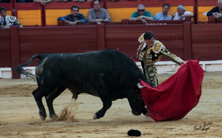 Ovación a Rafaelillo con el cuarto tras una labor fundamentalmente valiente y de lidiador consumado. Recibió al toro con una larga cambiada de rodillas. Luego, lo recogió con verónicas flexionada la pierna hasta hacerse con la embestida y rematar con una media. El toro tomó un puyazo y el torero brindó a Escribano. Labor poderosa, plena de recursos, eminentemente derechista, con el toro fiel a su encaste, acordándose de lo que se dejaba atrás. Faena de mérito de Rafaelillo, que anduvo bien por la cara. Sin embargo, una estocada al tercer intento y varios fallos con el descabello le privaron de mayor premio.