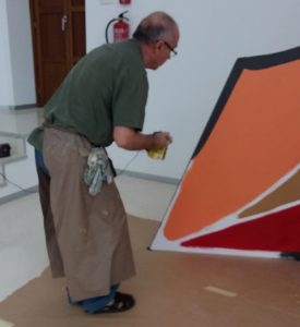 El pintor ha trabajado durante dos meses y medio en la creación de la escenografía, ayudado por planos y pequeñas maquetas en papel, que han permitido al artista, un montaje más rápido, “todo como si fuera un recortable de los niños” ha dicho Bernal.