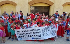 LORCA (Murcia). Lunes, 25 de Septiembre de 2017. – Prensa-C.T.LORCA – Más de un centenar de niños se congregaron ayer domingo 24 de septiembre en las inmediaciones del coso de Sutullena de Lorca para participar en las actividades del programa que trata de enseñar la tauromaquia a los más pequeños de la casa y que visitaba por primera vez la Región de Murcia para reivindicar la reconstrucción de la plaza de toros de Lorca.