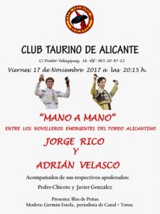 Jorge Rico y Adrian Velasco, »mano a mano» en Club Taurino de Alicante / Informa: José Maria Jericó