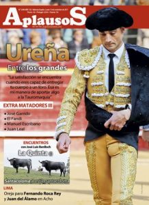El número 2.094 de APLAUSOS ya está en los kioscos. Paco Ureña es el protagonista de la primera página y de una amplia entrevista en el interior en la que analiza todo lo acontecido a lo largo de su temporada 2017. “La satisfacción se encuentra cuando eres capaz de entregar tu cuerpo a un toro. Esa es mi manera de aportar algo a la Tauromaquia, expresándome así y dejando en el aficionado y en el que no lo es tanto la sensación de emoción”, señala el torero murciano, quien añade: “Tal y como yo veo el toreo, es difícil que pueda durar veinte o veinticinco años, aunque ojalá sea así porque eso significará que los toros me han respetado”.