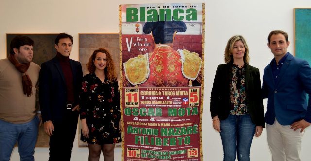 Con la participación del matador de toros Filiberto y del rejoneador Oscar Mota, la presentación estuvo a cargo de la Alcaldesa de Blanca, Ester Hortelano, la concejal de Festejos, Lucía Ato, y el empresario taurino, Mario Hidalgo.