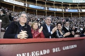MIEMBROS DEL PARTIDO SOCIALISTA OBRERO ESPAÑOL EN LOS TENDIDOS Y EN EL CALLEJÓN DE LA PLAZA DE TOROS DE MURCIA EL PASADO FESTIVAL A BENEFICIO DE LA AECC. DON RAFAEL GONZÁLEZ TOVAR, DELEGADO DEL GOBIERNO EN NUESTRA REGIÓN, OCUPANDO SU BURLADERO HABITUAL DEL CALLEJÓN Y DOÑA. BEGOÑA GARCÁA RETEGUI -PTA.PSOE DE LA REGIÓN DE MURCIA- PIDIENDO LA OREJA DEL TORO. ¡¡¡AFICIONADOS A LA FIESTA NACIONAL!!!…DE PUERTAS HACIA ADENTRO DE LA PLAZA PIDEN LA OREJA PAÑUELO EN MANO, Y DE PUERTAS HACIA A FUERA APOYAN CON SU VOTO LA PROHIBICIÓN DE LAS CORRIDAS DE TOROS EN CATALUÑA…, ¡¡¡QUE ME LO EXPLIQUEN!!!.