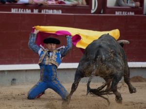 de Canal TOROS lo dicen todo de lo que ha sido plantarle cara a la primera ‘’prenda’’ de su lote; Rafaelillo con marcados varetazos en el rostro y el vestido destrozado por ‘’Berrugo’’ de nombre y colorado de capa. Tras intentarlo con alto riesgo se fue tras la espada con rectitud y mucha verdad, el toro lo prendió derribándole, momentos dramáticos en el que la habilidad y la experiencia, junto a la suerte, fueron clave para que todo quedara en una seria paliza y un tremendo susto. Con el verduguillo se atascó con un toro que se tapaba, lo esperaba y daba arreones. Silencio tras aviso.