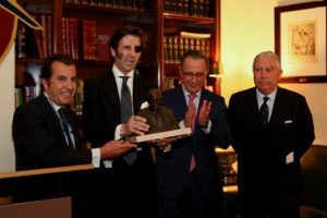 SEVILLA. Miercoles, 10 abril 2019. REDACCION.- (Fuente: Toromedia) – El Real Club de Andalucía ‘El Aero’ hizo entrega anoche de su prestigioso Trofeo Memorial Manolo Vázquez al matador de toros Juan José Padilla en un acto muy emotivo que contó con la asistencia de importantes personalidades de la sociedad sevillana. El galardón, que llega este año a su decimotercera edición, destaca su trayectoria en la Plaza de toros de Sevilla y también los valores personales y humanos que ha demostrado durante toda su carrera como torero y sobre todo en su última etapa.