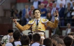Madrid, miércoles 22 de mayo de 2019. Publicado en www.AplausoS.es – GONZALO I. BIENVENIDA / Foto: JAVIER ARROYO. Feria de San Isidro. Una ovación estalló en el turno de Roca antes de salir el sexto. Por los tendidos se había corrido el rumor de la cornada. Muy abanto resultó el bajo y serio toro de Parladé. Rebotado de los caballos, se quedó sin picar con sueltas oleadas. Nadie veía al toro por ningún lado. Roca Rey, sí. Tras brindar al público, empezó con un pase cambiado por la espalda y una tanda que fue un pulso a vida o muerte. Las oleadas y los derrotes no cesaban pero la clave de la faena estuvo en la apabullante seguridad de Roca Rey. Primero aprovechó las inercias, con la mano derecha, para después someterlo con toques abajo y muleta rastrera. También el toro respondió con emotiva entrega. Especialmente en una tanda extraordinaria al natural. Dejó la muleta muerta, tragó y tiró despacio de la embestida crujiendo la cintura. Lo bordó. La emoción de la casta, nada fácil, y la deslumbrante entrega del peruano. Otro natural cumbre en redondo antes del final por bernadinas. La plaza fue un manicomio. La trincherilla como broche. Se volcó sobre el morrillo y las orejas premiaron la mejor faena de lo que va de San Isidro. De novillero ya salió a hombros con una cornada y tuvo que ir a la enfermería tras la puerta grande. En esta ocasión, la herida que le produjo el tercero tampoco le impidió gozar de una multitudinaria y apasionada salida en volandas.