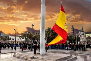 En la Explanada del Puerto, este jueves, a las 21:15 horas, solemne arriado de la Bandera, será en la »Escala Real» del Muelle Alfonso XIII, y participará una Compañía de Honores Mixta integrada por distintas secciones de las Fuerzas Armadas, acompañará la Unidad de Música del Tercio de Levante y una Bateria de Cañones del Regimiento de Artilleria Antiaérea nº 73 del Ejército de Tierra.