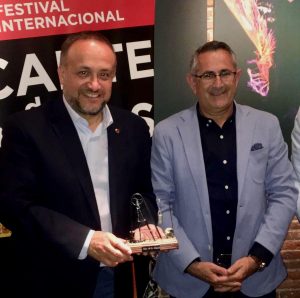 (en la imagen, el presidente de la Fundación Cante de las Minas y alcalde de La Unión, Pedro López Milán y Gerardo Álvarez Courel, presidente del Consejo Comarcal de El Bierzo)