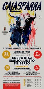 CALASPARRA (Murcia). Lunes, 8 de julio de 2019. – C.P. – (Fuente: Toromedia) – La empresa Chipé Producciones, que dirige Pedro Pérez ‘Chicote’, tiene cerrado el cartel de la tradicional Corrida de los Santos que se celebra todos los años en Calasparra y que supone la primera cita de esta localidad murciana de gran arraigo y prestigio taurino.