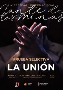 LA UNION (Murcia). Martes, 9 de julio de 2019. -Prensa-FICM- Las pruebas selectivas llegan al municipio de La Unión. Por primera vez en la historia del Festival Internacional del Cante de las Minas, Huerto Pío acogerá una de las audiciones del certamen. El evento se celebrará este jueves, 11 de julio, a partir de las 21 horas. La entrada es libre, hasta completar el aforo, de aproximadamente cien personas.
