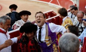PAMPLONA (Navarra). Domingo, 14 de julio de 2019. REDACCIÓN TNM.- Foto: JAVIER ARROYO – Ultima de Sanfermines – RAFAELILLO se había enfrentado al gigantesco primero de Miura, un toro imponente, áspero y complicado al que le hizo la lidia con el consumado oficio, solvencia y acreditada experiencia, en mil duras batallas, que tiene el murciano ante los miuras y similares, tras pinchar estoconazo en la yema. Fue ovacionado saludando desde el tercio.