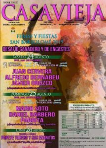 Lo último que nos llega de Parrita es estar acartelado en el »Desafío Ganadero y de Encastes» – Feria de San Bartolomé 2019-, en la muy taurina localidad de Casavieja (Avila), población que con tan solo »Mil Quinientos Habitantes», tiene la admirable y elogiable capacidad de organizar cada año una prestigiosa feria. Organiza: Excmo. Ayuntamiento de Casavieja. Empresa: Sanmonget, S.L. Colabora: Morenito de Cáceres. Los festejos comenzarán a las 18:30 horas.