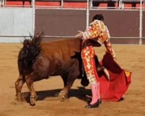 El primer novillo del lote del murciano José Maria Trigueros con muchas teclas, en el inicio de la faena salía con la cara por encima del estaquillador, la firmeza y mando de Trigueros se impusieron a las complicaciones del novillo. Faena de interesantes contenidos y variado repertorio que caló en los tendidos; le tuvo cortadas las dos orejas