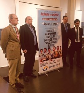 MADRID. Miércoles, 22 de enero de 2020. -C.P.- Tauroemoción ha presentado esta mañana en la Sala Antonio Bienvenida de Las Ventas el cartel del festival con picadores que se celebrará en Aranda de Duero en homenaje a los cirujanos taurinos. En el acto han estado Alberto García, director de Tauroemoción; Dr. Pascual González Masegosa, presidente de la Asociación Española de Cirujanos Taurinos; Dr. Enrique Crespo, secretario de la Asociación de Española de Cirujanos Taurinos; y Nacho de la Viuda, gerente de Tauroemoción.