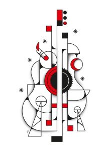Pedro J. Bernal añade que la obra, realizada mediante técnicas de diseño digital, refleja el espíritu del festival, con una lectura sencilla que invita a descubrir elementos recreándose en la observación de la misma. En su conjunto muestra planos con profundidad, delimitados por geometrías sencillas y sobrias, que recrean una guitarra como instrumento representativo del flamenco, siendo el más asociado culturalmente e históricamente, y capaz de poder ejecutar una pieza completa gracias a sus propiedades y matices sonoros y a las técnicas de ejecución (uso de técnicas de “picado” de notas, arpegios, acordes, armónicos…).
