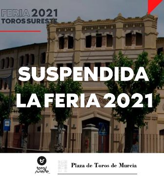 MURCIA. Lunes, 30/ag./2021. REDACCIÓN.- (Fuente: Toromedia). La empresa toma esta triste decisión después de que los datos de incidencia COVID-19 mantengan a la Comunidad en NIVEL DE ALERTA 2 y continúe la normativa del metro y medio de separación entre espectadores, lo que hace inviable poder celebrar la feria.