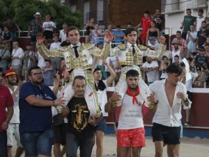 BLANCA (Murcia). Lunes, 15/agosto/2022. Informa: TOROMEDIA. La final del II Certamen Villa de Blanca comenzó con una fuerte ovación que obligó a saludar desde el tercio a Marcos Linares y Víctor Acebo.