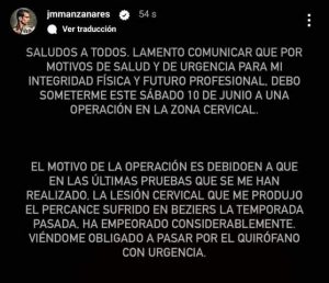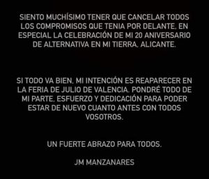 COMUNICADO DE JOSÉ MARIA MANZANARES EN INSTAGRAM.