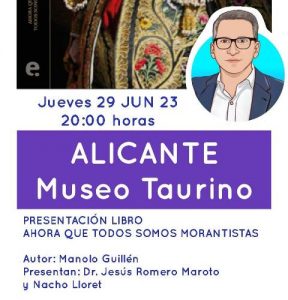 ALICANTE. Martes, 27/junio/2023. Informa: JOSÉ MARIA JERICÓ. El salón de actos del Museo Taurino Municipal de Alicante acogerá el próximo jueves, 29 de junio, a las 20,00 horas, la presentación del libro “Ahora que todos somos morantistas” del que es autor Manolo Guillén, última obra, hasta el momento, del periodista murciano, escritor y crítico taurino, director del podcast “Hasta el rabo todo es toro”.