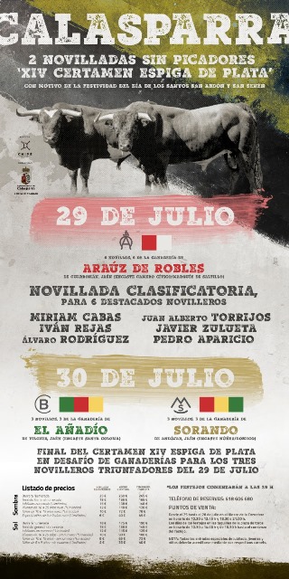 CALASPARRA (Murcia). Jueves, 06/julio/2023. Informa: TOROMEDIA COMUNICACIÓN. La empresa Chipé Producciones ya tiene cerrada la primera gran cita de la temporada en Calasparra (Murcia), donde este año, de acuerdo con el Ayuntamiento y la Mesa de Trabajo, va a apostar con más intensidad por los más jóvenes del toreo en el Certamen XIV Espiga de Plata, que se refuerza y revitaliza al pasar a contar con dos festejos, una primera novillada clasificatoria en la que participarán seis aspirantes y una final con tres novilleros. La Espiga de Plata coincidirá con la festividad del Día de los Santos San Abdón y San Senén de esta localidad.